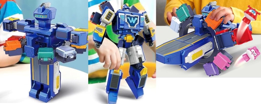 The 3 in 1 Mode Rescue Bots have a three-mode transformation design, allowing it to switch between a robot, a space aircraft, and a world spaceport, all inspired by the popular animated series “Super Wings.”